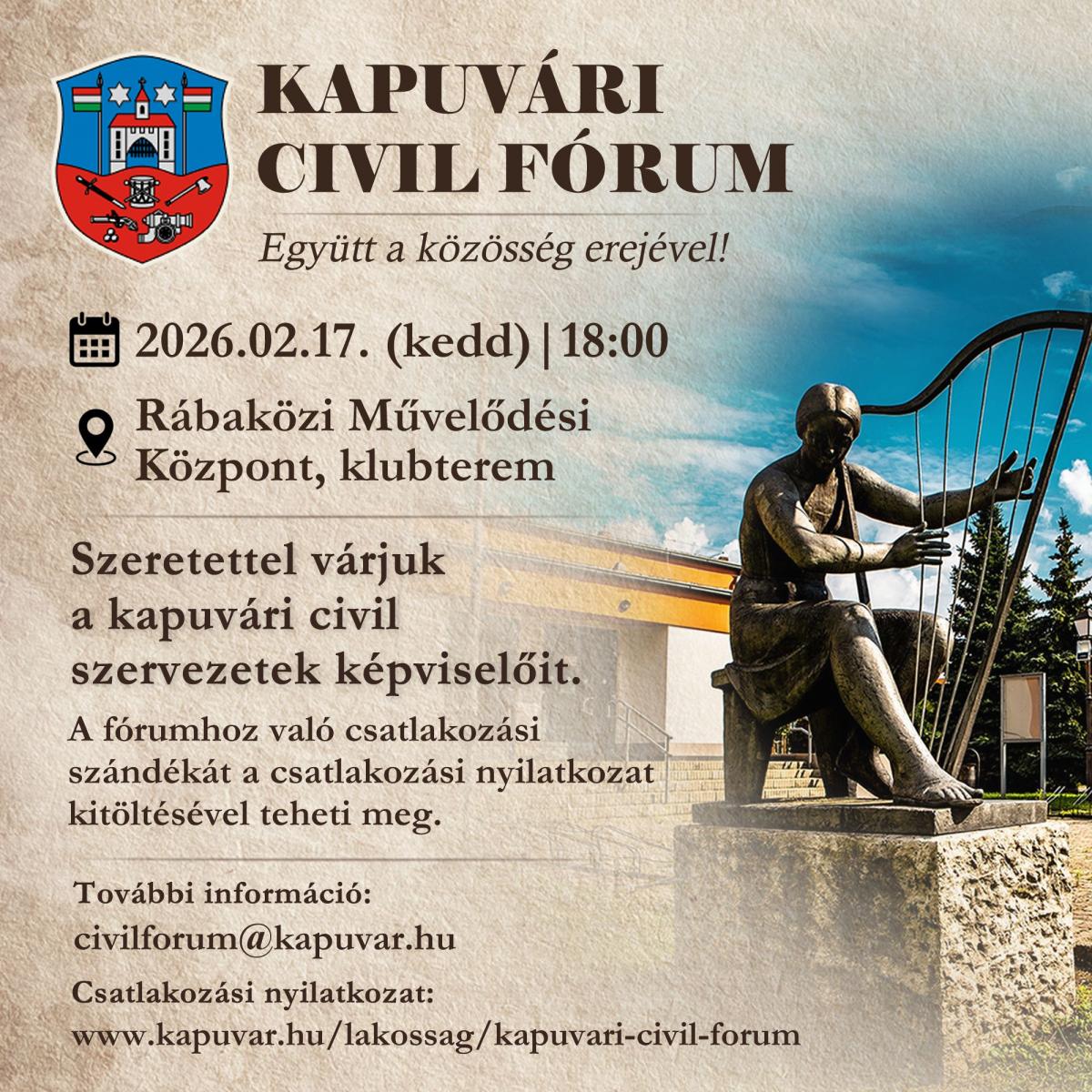Kapuvári Civil Fórum alakuló ülése 2026. február 09. 2024. Február 9-10. 09:00 - 19:00 2024. Február 9-10. 09:00 - 19:00 2026. február 09. Városháza Rendezvénynaptár < 2026. február > H K SZ CS P SZO V 262728293031123456789101112131415161718192021222324252627281 Választási információk Tudjon meg többet! Városháza hírei Vágányzári hirdetmény 2026.02.14.-02.15. 02.21-.02.22. 8-as vonal 2026. február 09. Kapuvári Civil Fórum alakuló ülése 2026. február 09. Vágányzári hirdetmény 2026.02.14.-02.15. 02.21-.02.22. 1-es vonal 2026. február 09. Városháza minden hirdetménye